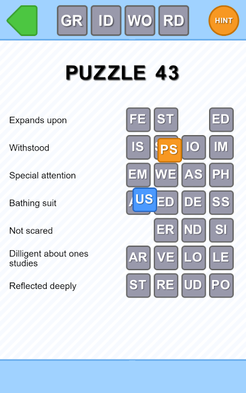 Gridword is a word puzzle game that is part anagram, part crossword, and all fun!