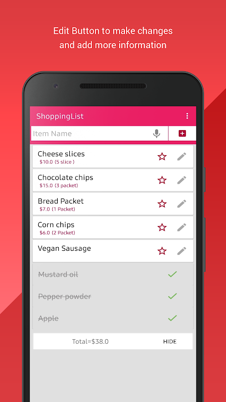 Buat daftar belanjaan dengan mudah untuk item toko kirana Anda.