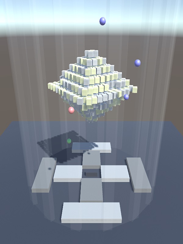 Serang balok-balok dalam ruang 3D dengan bola-bola.