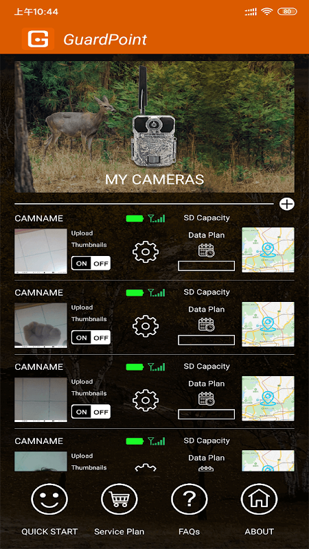 Aplikasi GuardPoint dikhususkan untuk kamera 4G nirkabel satwa liar. Hubungkan lebih banyak kamera 4G Trail Anda dengan aplikasi GuardPoint melalui 4G, semua pengaturan dan data kamera dapat diatur oleh aplikasi ini, membuat pengguna mengontrol kamera dengan mudah, mengelola lebih banyak kamera Anda dan meninjau lokasi kamera Anda , foto dan video, Anda dapat dengan mudah memilih untuk mengunduh foto favorit Anda ke ponsel Anda. APLIKASI ini memudahkan para peneliti akademis dan fotografer satwa liar, serta departemen kehutanan untuk mengelola peralatan dan melakukan analisis data. Ini berlaku untuk Android dan iOS dan mudah diatur.