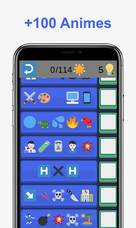 Tebak anime klasik dan baru hanya dengan emoji. Ada lebih dari 100 level yang berbeda, menambahkan level baru setiap musim ke dalam permainan.