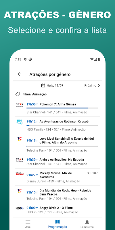 Panduan TV, Jadwal TV Kabel Brasil, Detail dan Pengingat Atraksi