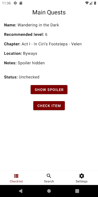 Versi lama Guide, Checklist - Witcher 3