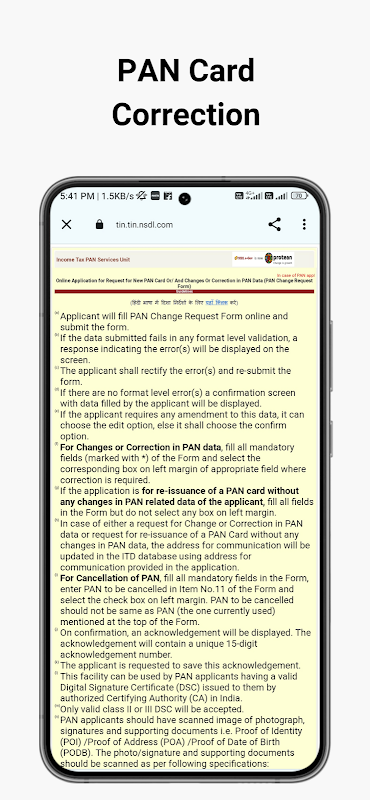 Koreksi Kartu PAN: Pembaruan/Koreksi Kartu PAN (पैन कार्ड अपडेट/सुधार)