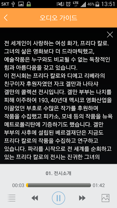 Audio guide, text, and image explanations of downloaded displays