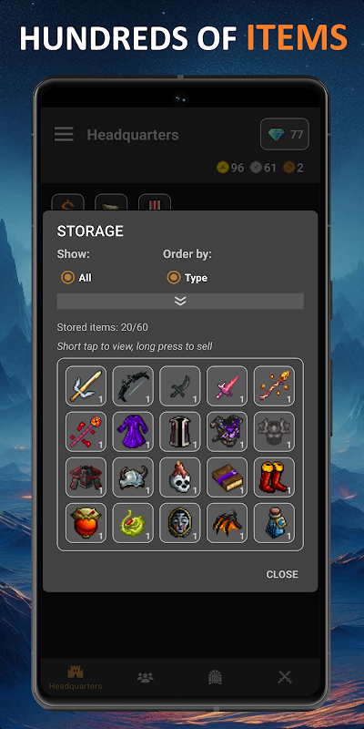 Bentuk Guild-mu sendiri, jelajahi Dungeon, dan kumpulkan rampasan legendaris! RPG yang sepenuhnya idle