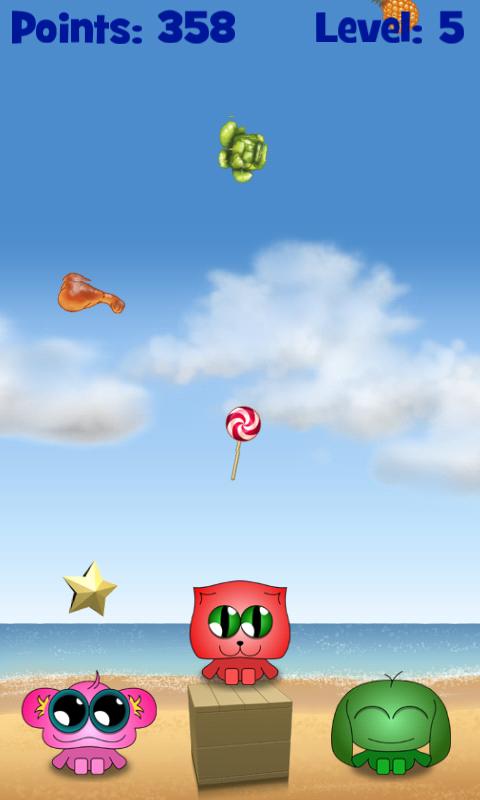 To play, position each item over the right Gulpy, and watch him gulp it down. Special items are there to stir things up. When a Gulpy has had the wrong food he'll loose a life and a crate will get placed where he was standing. If the crate pile reaches the top of the game screen, the game ends.