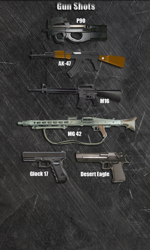 Apakah Anda suka senjata? Atau mungkin Anda ingin menembak dengan senjata seperti populer sebagai senapan mesin ringan Belgia FN P90? Hal ini mudah! Unduh aplikasi ini gratis dan Anda akan memiliki kesempatan. Tapi apakah Anda benar-benar berpikir bahwa kami akan menawarkan Anda hanya satu senjata untuk memilih? Tentu saja tidak. Kami telah menyediakan Anda dengan gudang senjata. Perhatian Anda juga diberikan: