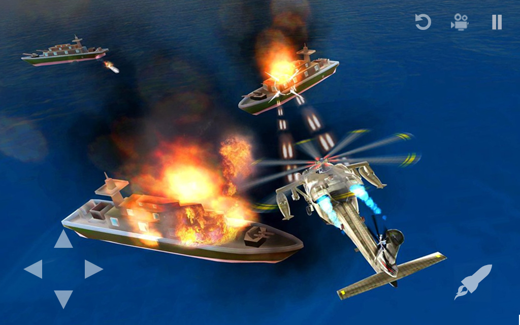 Gunship Helicopter : Aerial Warfare Apache Attack is a Gunship Helicopter simulation game. In this the user will be flying the helicopter and indulge himself in intense aerial battles. Gunship Strike puts you in the gunner seat of the most powerful combat helicopters. Strategically fire your powerful machines guns and devastating missiles to slay hordes of enemies across the world. The game is specially designed for the modern aerial warfare and classic aerial battles to give the user realistic firsthand experience of war where naval battles have great importance. Do not let yourself carried away performing cautious helicopter adventures your sole duty is to destroy enemy battleships in this bloody war otherwise you will be failed. The game features multiple aerial strike and naval strike challenges the user has to be the ultimate pilot with super-efficient with aerial maneuvering when it comes to aerial battle and naval battles. Follow the fast vehicles on the busy and luxury roads and hit them on spot. It is fatal to enter the battle without dreaming for the win, don’t think to lose the ultimate helicopter battle 3d. The user has to be extra careful with Helicopter’s altitude and avoid air crash. In any emergency situation the pilot can pass maeday message for emergency landing. Prevent your helicopter from running out of oil and make sure to not collide with other helicopters.