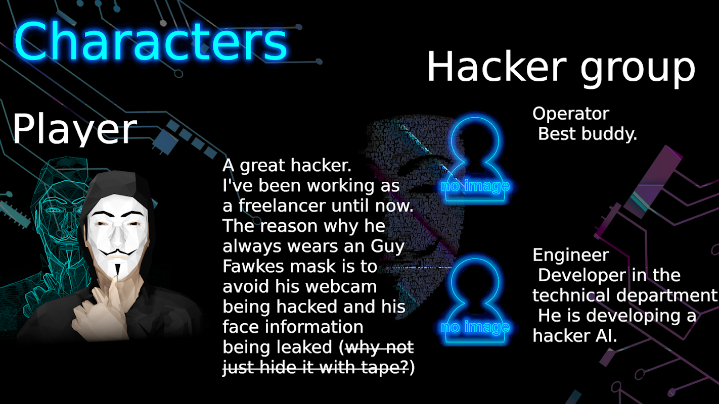 Protagonis termasuk dalam kelompok peretas, tingkatkan PC-nya, dan perkuat karakternya dengan buku-buku khusus.
