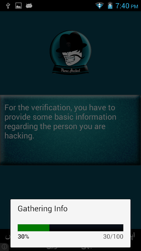 Hack Phone Simulator is a prank app which can fool others. Hack Phone Simulator can hack any operating phone that is in your vicinity. Hack Phone Simulator can hack in to the selected phones when you provide some simple information regarding them and you can impress your friends with such a cool idea and you will act like genius. Hack Phone Simulator works simply by,