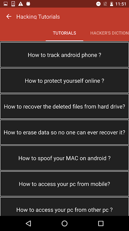 The information provided in this app is to be used for educational purpose only All of the information provided in this app is meant to help the reader develop a hacker defense attitude in order to prevent the hacker attacks.
