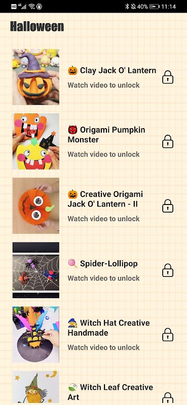 This application contains a collection of Halloween decorations schemes video tutorials. You can follow the video step by step to make the creative works. It has a friendly、simple & easy interface and it is suitable for people of all ages. You can use it offline, you can also save the video tutorial to your phone and share it with your friends.