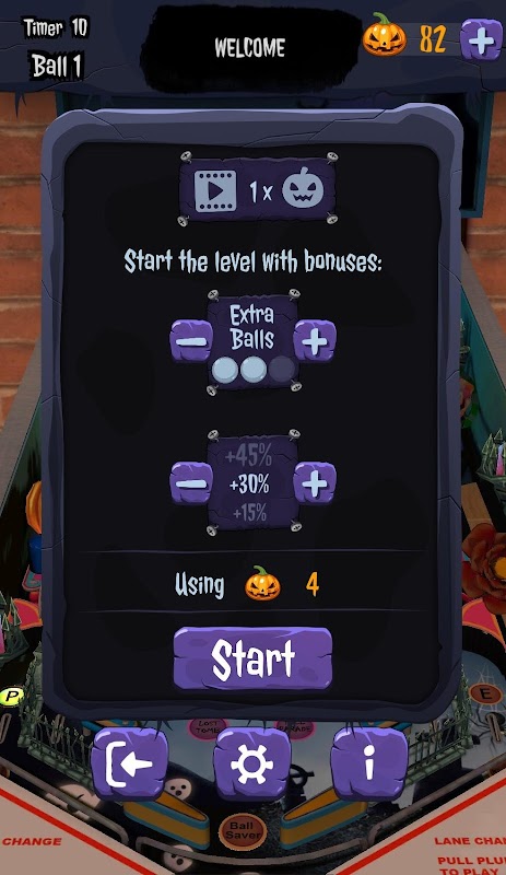 Game pinball bertema Halloween yang seru dengan 5 Labu gratis yang dapat dibelanjakan saat pertama kali dipasang.