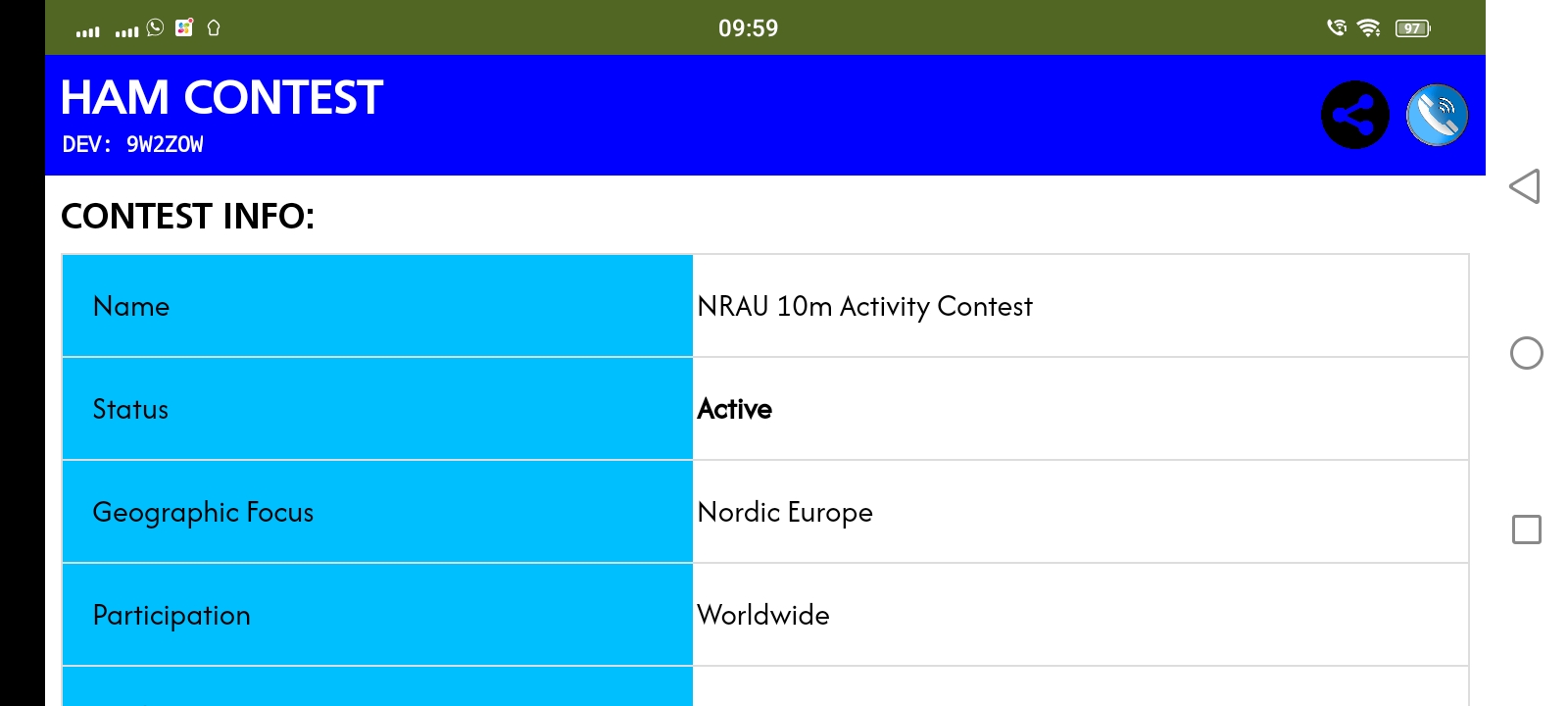 Aplikasi ini menggunakan layanan gratis yang disediakan oleh Bruce Horn, WA7BNM. Ini memberikan informasi rinci tentang kontes radio amatir di seluruh dunia, termasuk tanggal atau waktu yang dijadwalkan, ringkasan peraturan, informasi pengiriman log dan tautan ke peraturan resmi yang diterbitkan oleh sponsor kontes.