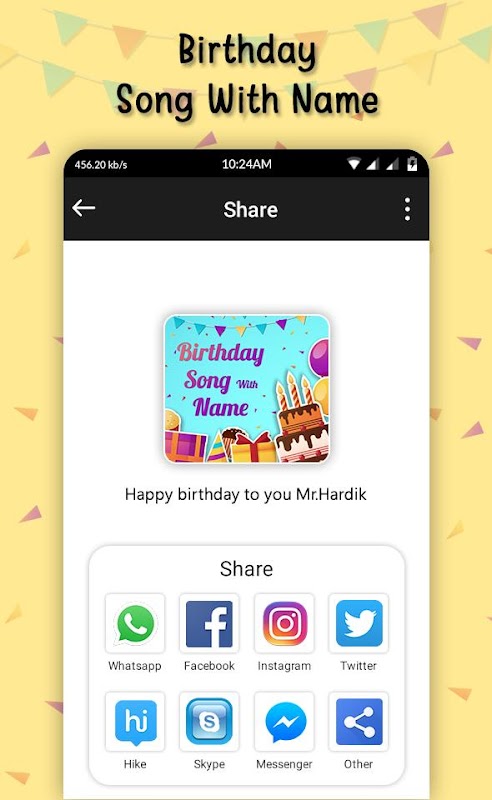 Collection of Different birthday song included in this app. My Name Birthday Song Maker is also same as birthday song maker, Birthday dp & status, birthday photo frame, birthday cake photo frame and birthday movie maker.Send the most exciting and original Happy Birthday singing Song wishes personalized with your friends and family member own name!