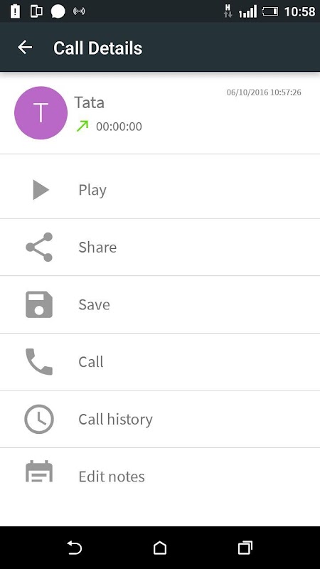 Use your call record for following actions Play,Delete,Call,Share,Share Direct to Call Sharing apps