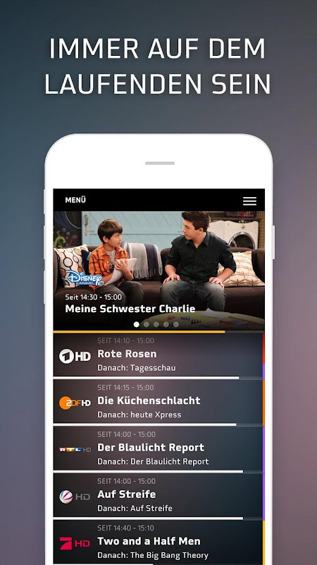 Mit HD+ ExtraScreen und der HD+ Connect App gehört der Streit um die Fernbedienung ab sofort der Vergangenheit an! So kann jeder auf bis zu 5 unterschiedlichen Devices genau das TV-Programm schauen, worauf er Lust hat. Mit dem praktischen TV Streaming auf Ihrem Smartphone oder Tablet können Sie sich frei durch Ihr Haus bewegen. Schauen Sie Ihre Lieblingssendungen im Bett, in der Küche oder sogar im Garten – das alles soweit das W-LAN reicht, denn Ihr TV-Signal folgt Ihnen auf Schritt und Tritt.
