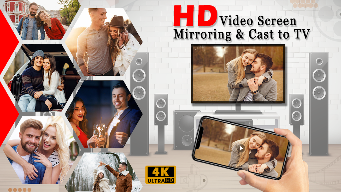 Screen Mirroring - membantu Anda mentransmisikan layar ponsel kecil ke layar TV besar dalam kualitas tinggi dan kecepatan waktu nyata. Anda dapat dengan mudah mengakses semua jenis file media, termasuk game seluler, foto, musik, video & E-book, dll. di layar lebar.