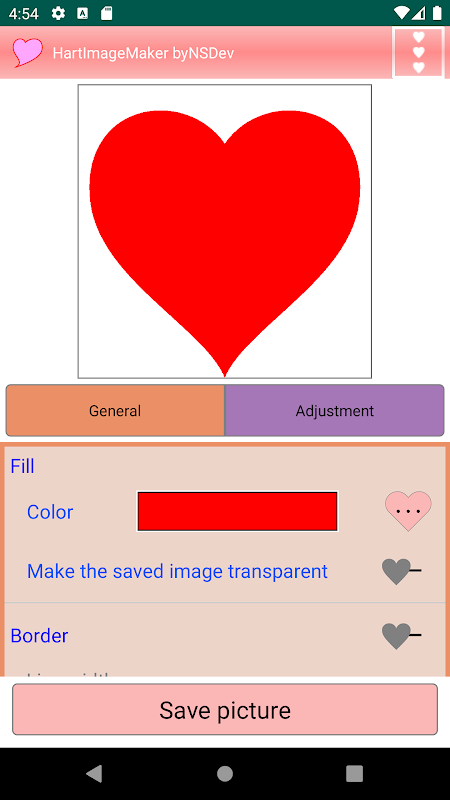Anda dapat menentukan warna isian hati. Transparansi juga dimungkinkan saat membuat file gambar.