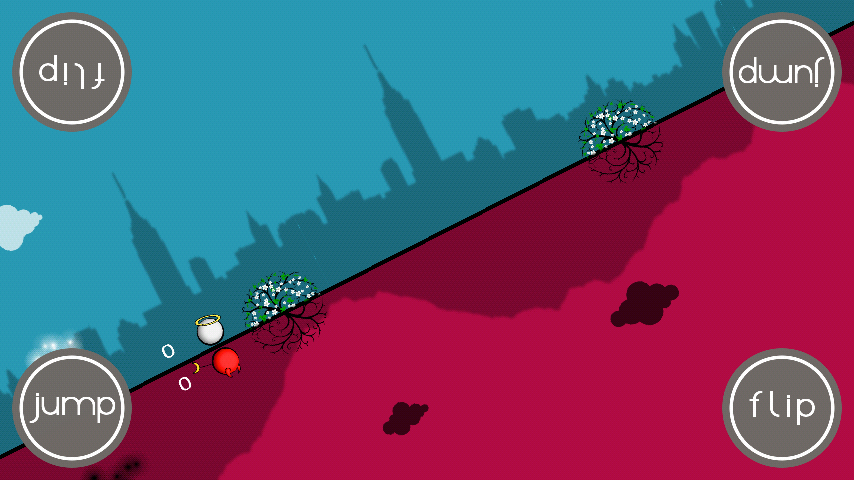 Heaven or Hell is an award-winning competitive 'infinite runner' with a twist - two players run at the same time, on the same device! Run, Jump and Flip around either side of the central line, collecting soul and using power-ups to boost your performance, and hinder your opponents!