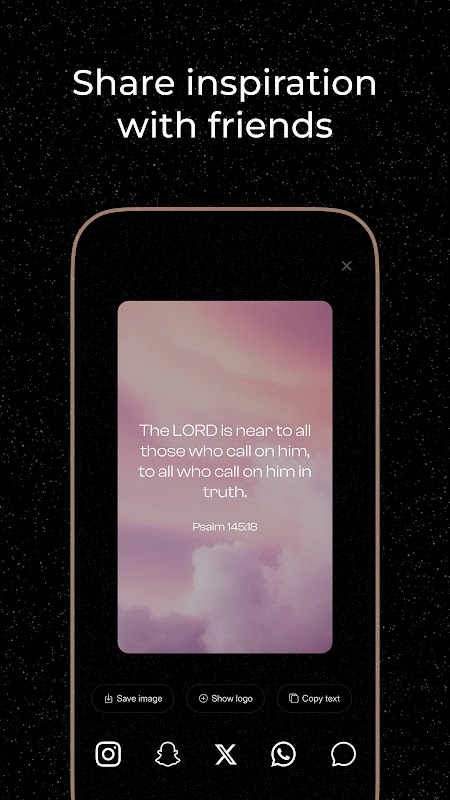 Sebarkan Firman Tuhan dengan satu ketukan. Bagikan ayat-ayat Alkitab dan kutipan Kristen dalam bentuk teks atau gambar dengan teman, keluarga, atau komunitas iman Anda. Heavenly memudahkan Anda menginspirasi orang lain melalui media sosial atau pesan pribadi.