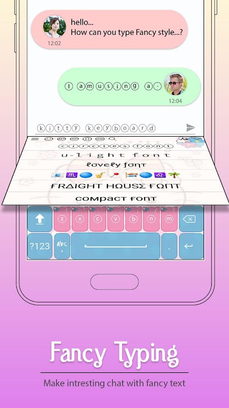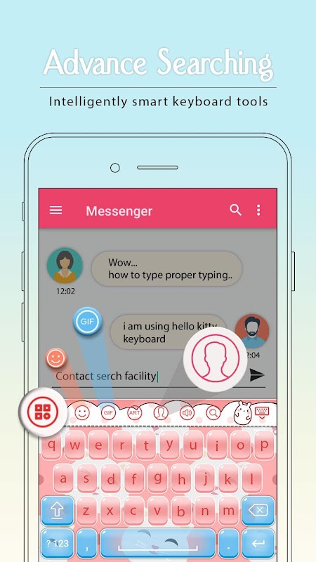 A beautiful lovely Kitty Keyboard with amazing features is designed for those who like sending message with GIF, emoticon and emoji. It is a MUST-HAVE free android stylish emoji keyboard.