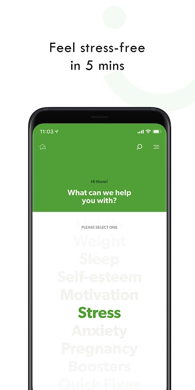 HelloMind membantu Anda mengatasi masalah seperti stres, kurang tidur, penambahan berat badan, dan harga diri rendah. Pilih perawatan, lalu rileks dan dengarkan sesinya. HelloMind membantu Anda mengambil kembali kendali dari emosi negatif, keinginan, ketakutan dan kebiasaan buruk dan dapat meningkatkan motivasi dan kenikmatan hidup Anda.