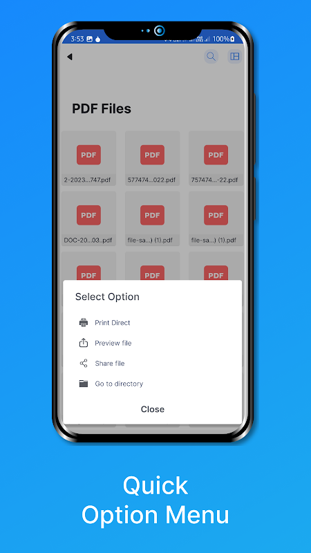 Solusi untuk mencetak dan mengelola file menggunakan pengelola file bawaan, penampil PDF, dan penampil gambar.