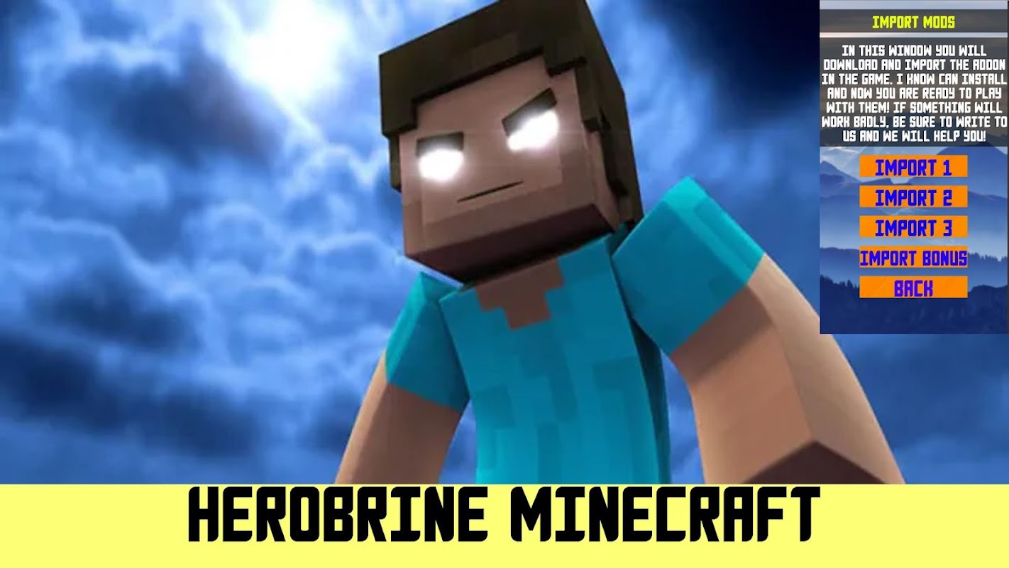 Mod Herobrine untuk Minecraft PE akan menambahkan Pahlawan ke dalam gim yang akan membuat MCPE Anda sangat menarik dengan tekstur, monster, fungsi, dan shader realistis baru!😀