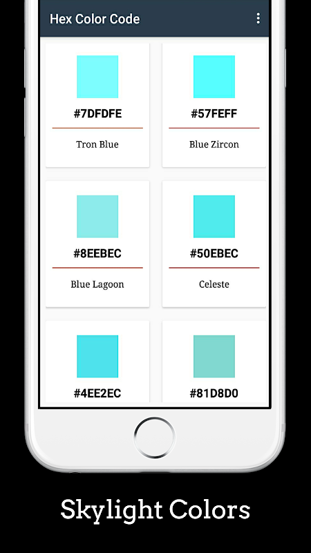 Kode Warna Hex: semua kode warna hex dengan nama warna tercakup dalam aplikasi ini.