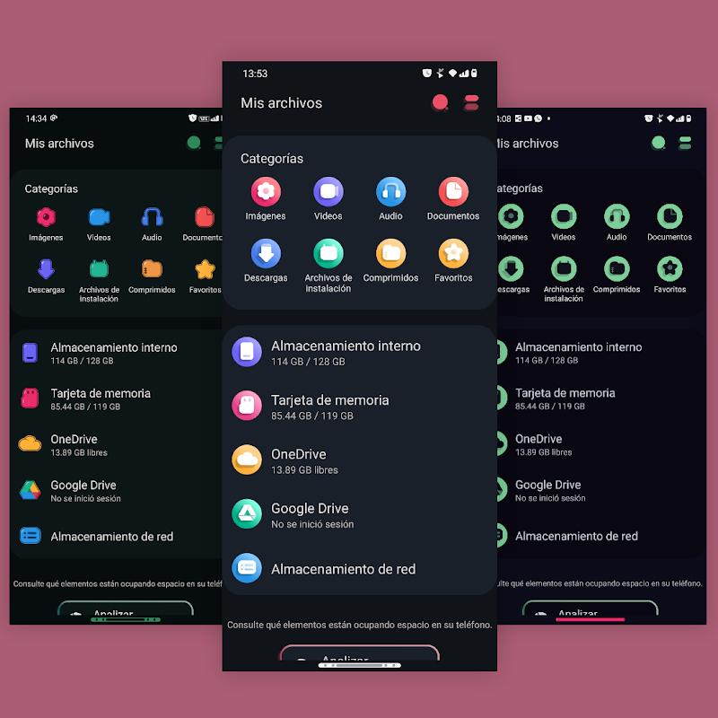 Tema kulit Samsung OneUI dengan elemen plugin HOUNTER untuk mode Siang / Malam.