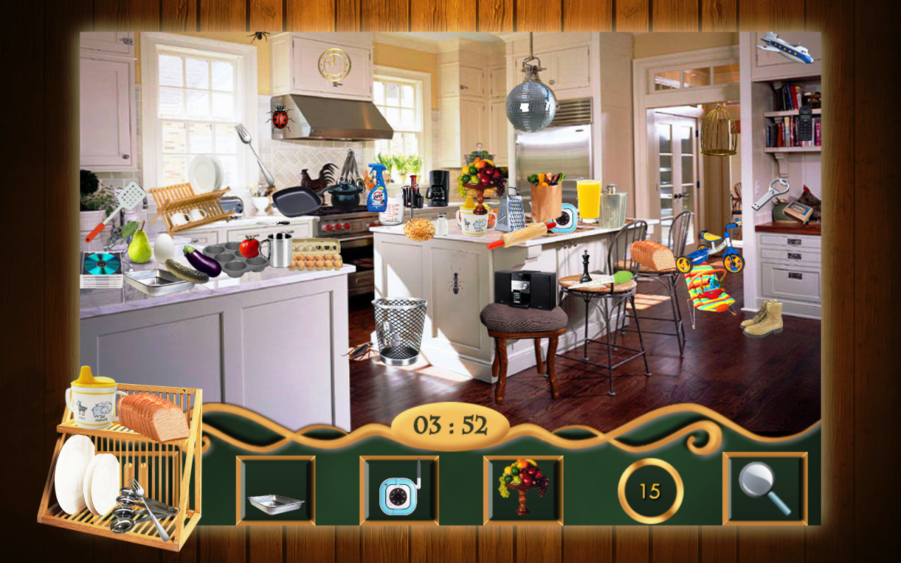 Objek Tersembunyi - Kitchen Game adalah salah satu yang terbaik menemukan permainan objek tersembunyi dari 2.014 dengan 15 dapur yang sangat berantakan dan banyak benda tersembunyi untuk menemukan . Hal ini sangat menantang dan adiktif menemukan benda tersembunyi teka-teki baik untuk anak-anak dan orang dewasa . Permainan gratis ini memiliki 15 tingkat menarik dan Ratusan benda yang hilang untuk menemukan . Setiap tingkat permainan dapat dimainkan dalam mode mudah atau modus keras di mana pengguna harus menemukan 15 benda tersembunyi dalam waktu yang terbatas .