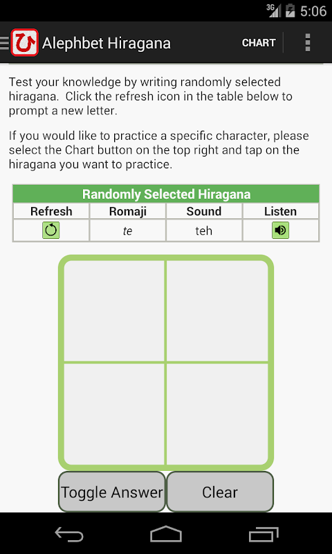 Belajar Hiragana tidaklah sulit jika Anda belajar secara bertahap. Terlalu banyak orang mencoba untuk menjejalkan segala sesuatu dalam semalam; mereka merasa frustrasi atau mereka lupa dalam seminggu. Alephbet Hiragana mengandung pelajaran terorganisir yang dirancang untuk membiarkan Anda membaca kata-kata dan frase yang lengkap saat Anda pergi yang akan memberikan latihan yang Anda butuhkan untuk membuatnya tetap. Saat Anda memasuki sesi latihan setelah setiap pelajaran, Anda nyaman dan percaya diri dapat membaca kata-kata yang hanya berisi Hiragana yang telah Anda pelajari sejauh ini.