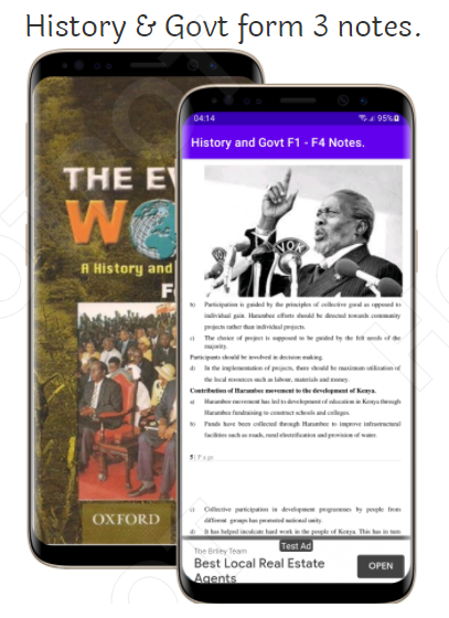 Aplikasi ini menampilkan formulir 1 - formulir 4 Sejarah catatan standar KCSE.