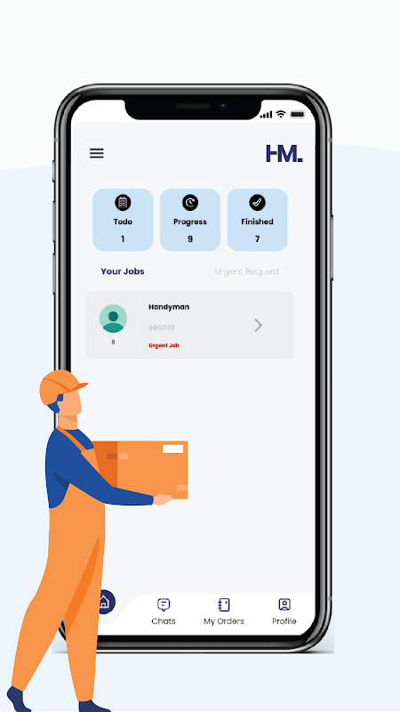 Aplikasi Pekerja HML: adalah aplikasi perantara antara pekerja di UEA yang telah menandatangani kontrak dengan HML, pelanggan Emirat dan penduduk UEA yang ingin mendapatkan salah satu layanan HML, yang mencakup layanan pemeliharaan umum untuk rumah, fasilitas, pipa ledeng dan listrik, instalasi dan pemulihan fasilitas serta banyak layanan tambahan yang terkait dengan layanan ini. Perusahaan mengirimkan seorang pekerja atau sekelompok pekerja untuk melakukan jasa yang diminta oleh pelanggan (membelinya). Pekerja dipilih sesuai dengan kompetensinya dan sesuai dengan spesialisasi dan keahlian yang dibutuhkan untuk melaksanakan tugas yang dibeli oleh pelanggan. Perusahaan memberikan imbalan kepada pekerja dalam bentuk gaji yang tetap dan tidak berkaitan dengan upah atas jasa yang dilakukan pelanggan, dimana pelanggan membayar harga jasa tersebut kepada perusahaan dan bukan kepada pekerja. Adapun status tugas (jasa yang dibeli oleh pelanggan dan pekerja harus melaksanakannya), alamat dan lokasi pelanggan (lokasi di mana pekerja akan pergi untuk melaksanakan tugas), pekerja mendapatkan informasi tersebut langsung melalui aplikasi.