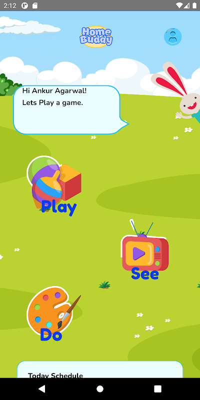 Aplikasi dimulai dengan sambutan hangat dengan nama anak.