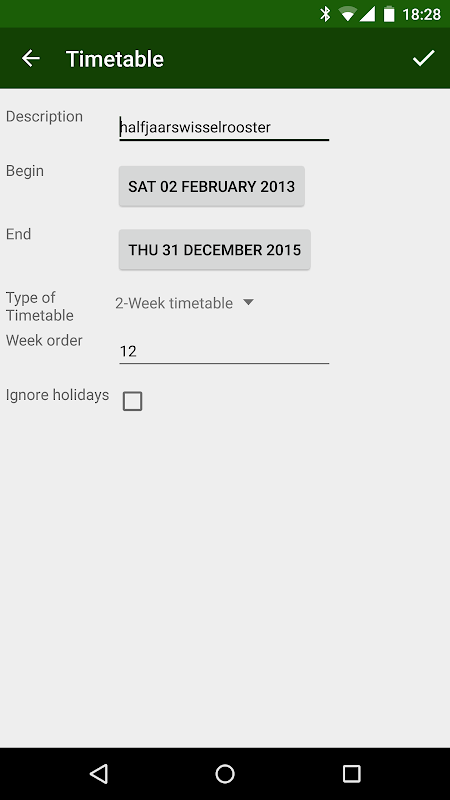 6. Dengan (pendek) Mengklik pada pelajaran di layar jadwal, Anda dapat menentukan pekerjaan rumah untuk pelajaran itu.