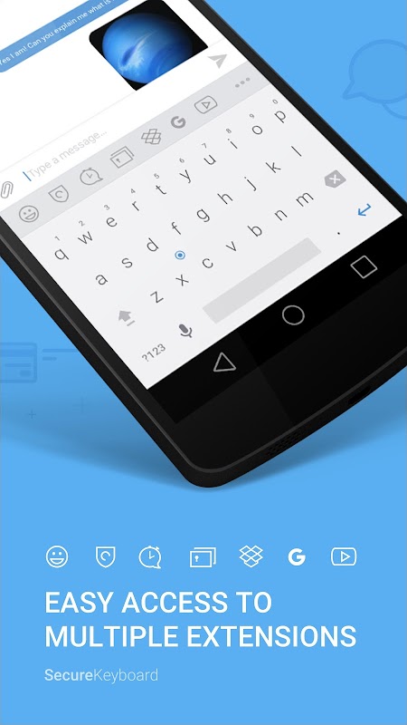 An Android keyboard with multi-language support and powerful extensions. Simply swipe left or right to choose from different languages. Auto-correction feature makes your typing fast and easy.