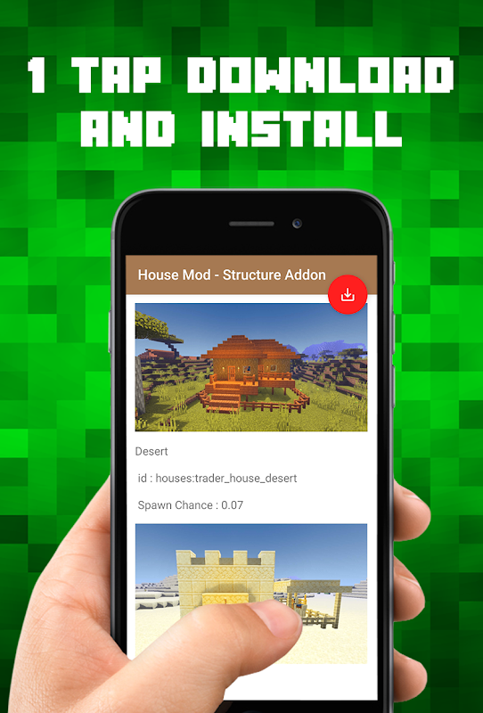 Addon Struktur Mod Rumah untuk aplikasi Minecraft PE ini membantu Anda mengunduh & menginstal Just Structure Addon ke dalam game Minecraft Pocket Edition Anda. Lupakan semua File Explorer atau BlockLauncher itu, dan selesaikan semuanya lebih cepat dan lebih mudah dengan penginstal 1 ketukan kami.