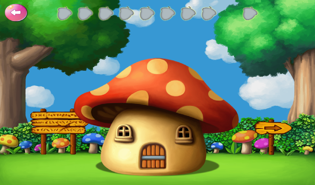 The naughty squirrel hide and seek, and you come the number of number of mushrooms inside the house in the end a number of little squirrels hiding