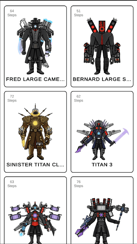 Apa yang harus dilakukan dalam aplikasi? Pertama, pilih karakter yang ingin Anda gambar - TV Man, Cameraman, Clockman, TV Woman, Speakerman, Skibidi Toilet, Drillman, Astra. Sebelum itu, jangan lupa untuk mengambil selembar kertas, pensil, dan penghapus. Setelah memilih karakter, mulailah pelajaran! Ulangi semua langkah yang diberikan dalam pelajaran, dan Anda akan dengan mudah menggambar karakter yang dipilih. Percayalah, Anda tidak perlu pengalaman dan keterampilan dalam menggambar. Semuanya akan berhasil! Langkah demi langkah ikuti pelajaran dari aplikasi Cara menggambar toilet skibidi dan hasilnya tidak akan lama datang!