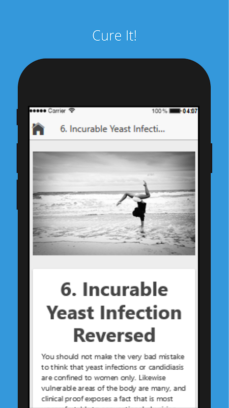 How to Get Rid of Yeast Infections is app guide for cure yeast infection, Many women suffer from yeast infection, or Vaginal Candidiasis and are searching for quality information on how to get rid of yeast infection. There are quite a few treatment options available to help cure yeast infection, or at least get quicker relief from the symptoms. These options range from simple home remedies to powerful drugs. For most women, natural remedies are probably the preferable way to take care of the problem.