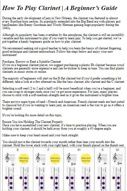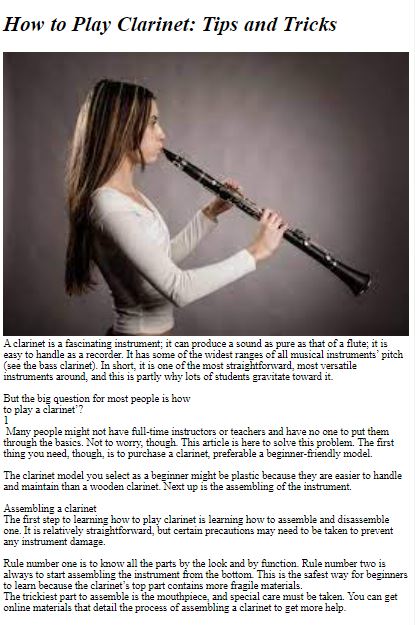 Membaca Catatan: Belajar membaca notasi musik, termasuk notasi staf, kunci musik, durasi nada, dan simbol musik. Berlatihlah mengidentifikasi nada-nada pada paranada dan menerjemahkannya menjadi permainan jari pada klarinet.