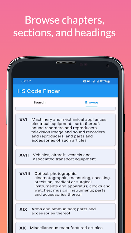 Aplikasi ini menyediakan akses offline ke basis data kode HS yang lengkap dan terstruktur, termasuk deskripsi, bab, judul, dan subjudul. Ideal untuk profesional impor/ekspor, perusahaan logistik, dan agen bea cukai.