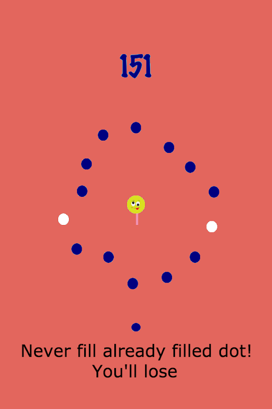 Hit the dots and be precise.You have to be on spot during playing and fill the hollow dots rotating around centre point with colour dots , if you'll miss even a single dot or you collide already filled dot , you'll lose. HS is all about "focus" and "target".