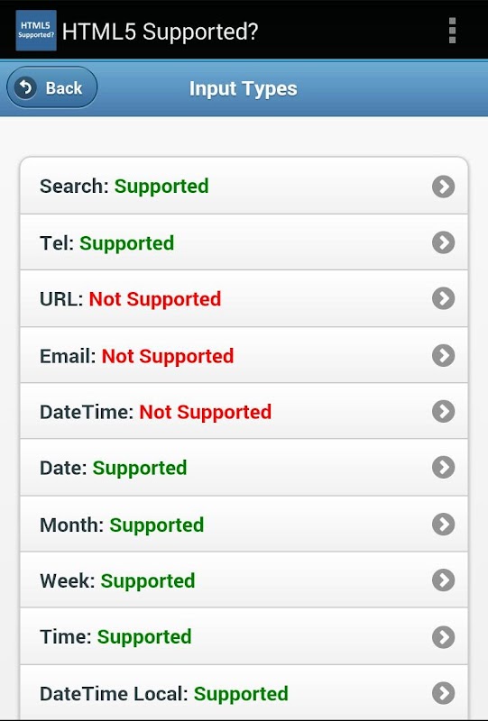 KHAWATIR TIDAK, menginstal ini besar App 'HTML5 yang didukung' pada ponsel Anda dan mulai mendeteksi fitur. Pencarian web yang lebih untuk deteksi dukungan fitur untuk perangkat Android.