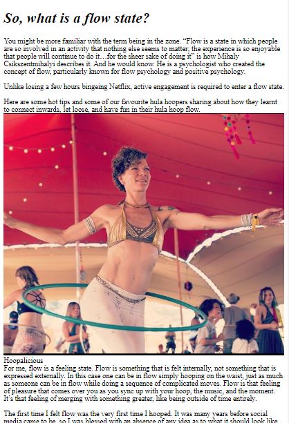 Keadaan Arus: Kembangkan keadaan mengalir, di mana Anda tenggelam dalam ritme dan gerakan hooping, biarkan kreativitas dan intuisi memandu tarian Anda.