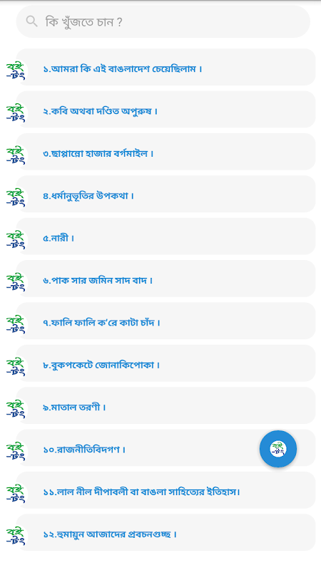 ১২টি বই এর তালিকা নিচে দেয়া হলো :