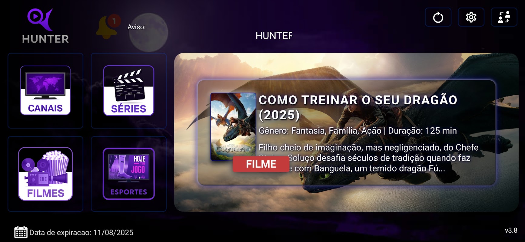 ⚠️ Penting: Hunter V38 tidak menyediakan kontennya sendiri. Anda harus memasukkan daftar yang kompatibel untuk menonton.